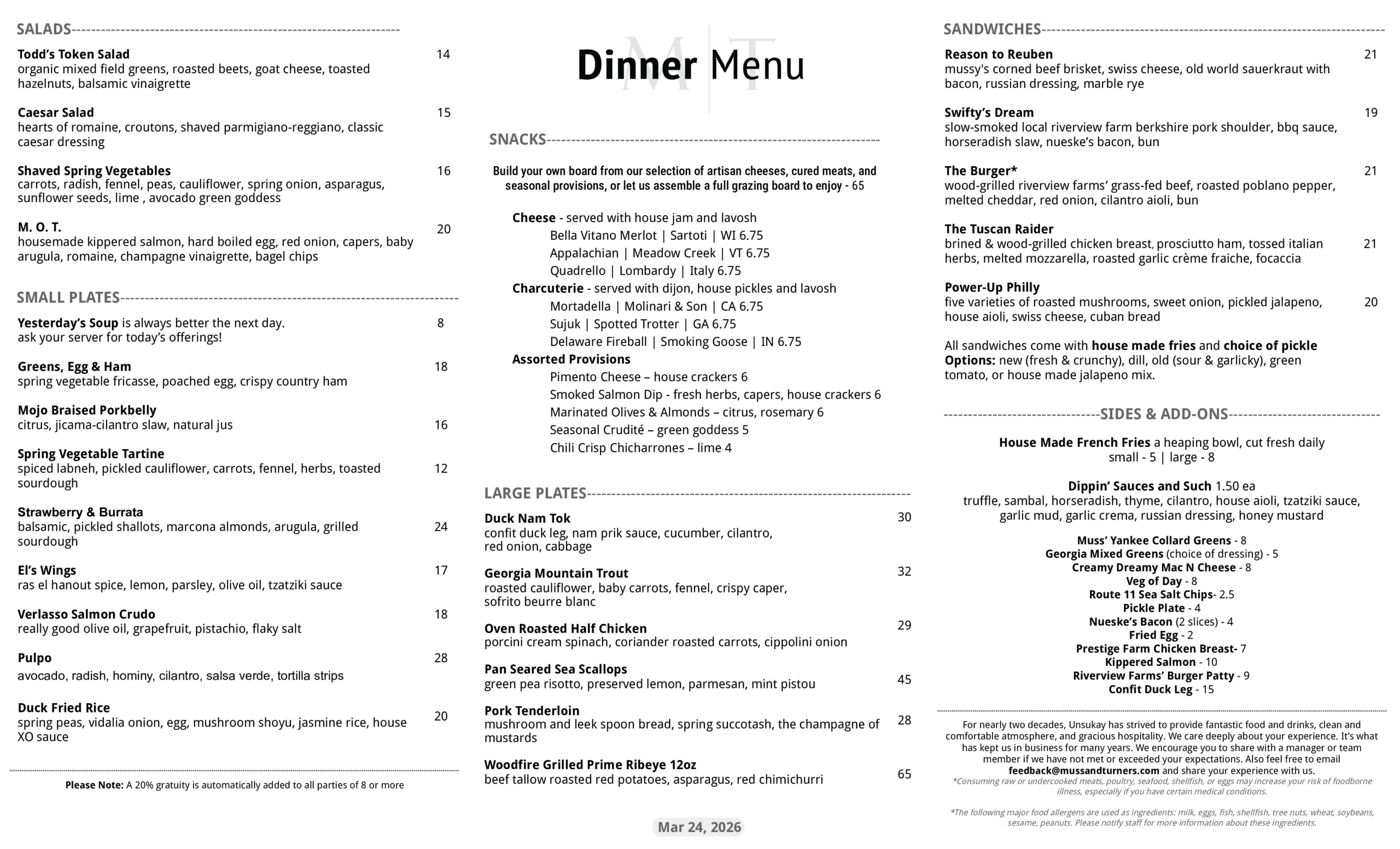 Our chefs like to keep things fresh (literally). The menus online are a solid guide, but not a legally binding document. The offerings below may be subject to change.
