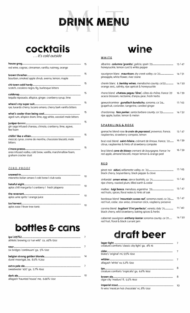 Muss & Turner’s will be closed on Monday, January 5, as we gather for our annual holiday party. We will also be closed for lunch the following day.